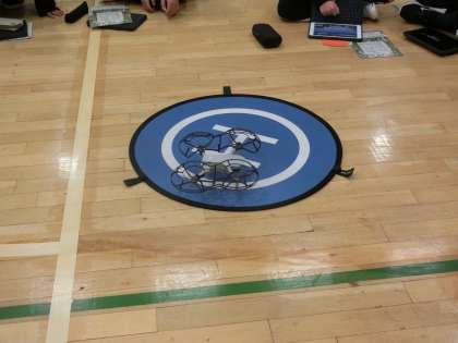 都立総合工科高校の先生による授業は体育館でドローンを使った授業でした。実際にドローンを操縦して離陸から目的地への着地、そして出発点への帰着とコンピューターを使って参加者全員が操縦を体験しました。簡単そうに見えますが繊細な操作が要求される技術ですね。