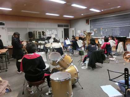 吹奏楽部は明後日の土曜日にウインターコンサートを予定しています。今日はOBも駆け付けてくれ練習にも熱が入りました。