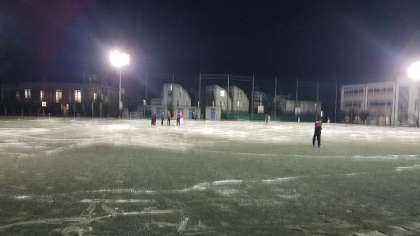 校庭に塩化カルシウムをまきました。部活動のみなさん、ありがとうございます。