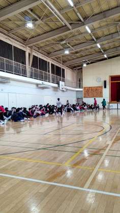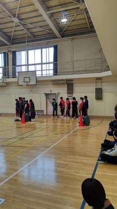 6時間目は2学期最後ということで、体育館で学年集会を行いました。前半は学年委員の学期反省。学年の先生方のお話でした。後半は学年レクを行いました。