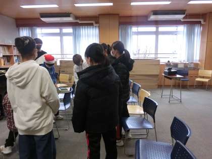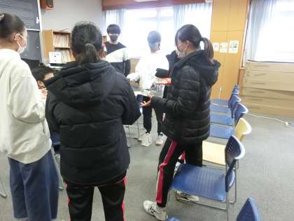 パフォーマンスデーの第2弾はプレゼント交換です。昼休みに音楽室に集まりクリスマスソングに合わせて持ち寄ったプレゼントを受け渡ししました。