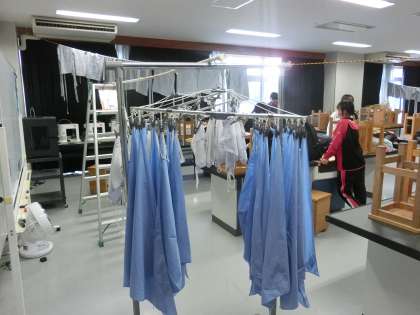 今日は給食準備で使用したエプロンを洗濯し、保健給食委員会で理科室、調理室、保健室に干しました。