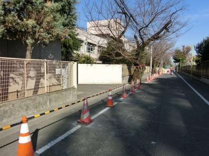 現在本校の東側道路の歩道の拡張工事が行われています。登下校、ご来校の際は十分にお気を付けください。