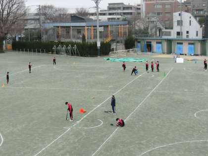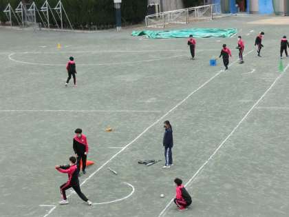 今日は朝からどんよりと曇って気温も上がりません。そんな寒さの中でも1年生の保健体育の授業ではソフトボールで元気に体を動かしました。