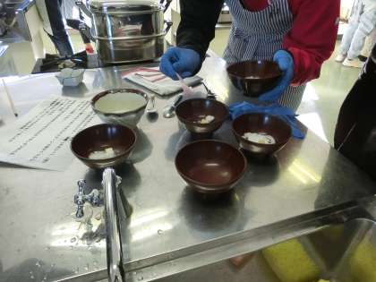 3年生の家庭科では調理実習でスイートポテトをつくりました。おいしそう!
