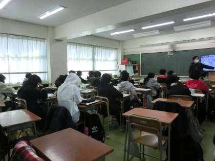 1年生の数学の少人数授業です。今日は相対度数の求め方を学習しました。