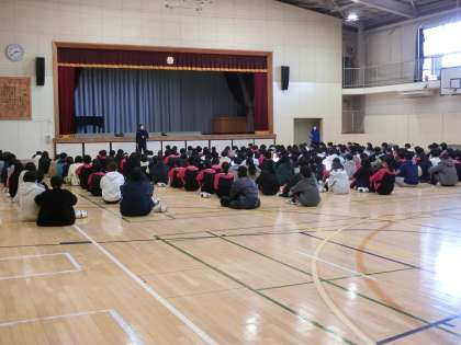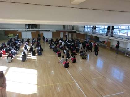 学年ごとに体育館と格技室に集合し人員確認を行いました。