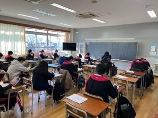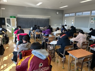 3年生の各授業では入試に向けて、3年間の復習ということで実践問題に挑戦しました。
