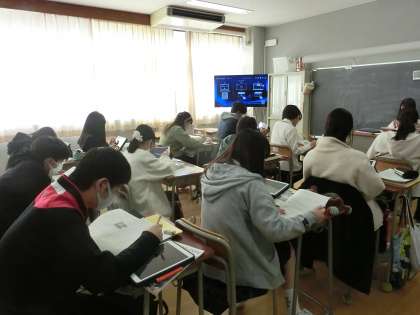 2年生の英語の少人数授業です。積み重ね総合テストにむけて単元のまとめを行いました。