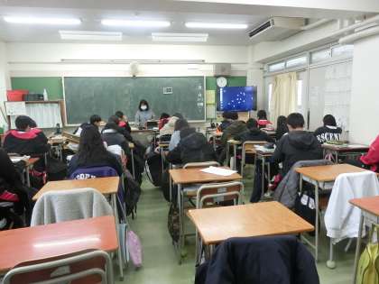 1年生の英語の少人数授業です。積み重ね総合テストに向けてのまとめの授業でした。