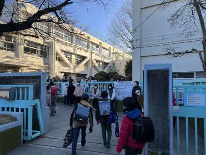今朝、生活委員の代表生徒が笹原小学校であいさつ運動を行いました。小学生の子どもたちと共に元気あふれるあいさつをしていました。