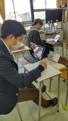 2月11日に文部科学省の関係する「みらいの学校」というイベントがあり、本校の生徒会役員3名と先生1名がZOOMで参加しました。それぞれの考えるみらいの学校について発表しました。