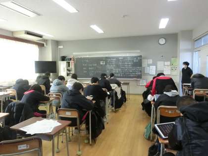 3年生は来週の火曜日に都立高校の入試を控えています。3年生の社会では地理の練習問題を解いて試験に備えました。