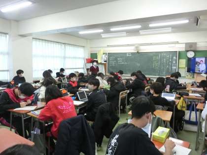 1年生の総合的な学習の時間では、つい先日引退した車いすテニスの国枝慎吾選手の生い立ちや取り組みを動画でみて、障がいを持つ人を通して人権について考えていきました。