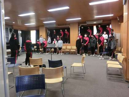 3年F組です。音楽室で行いました。さすが3年生どのクラスもしっかりと音が取れているようです。