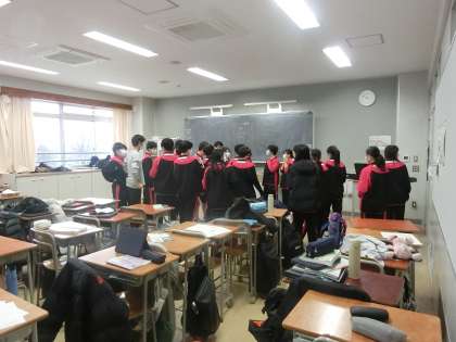 1年F組は教室で行いました。