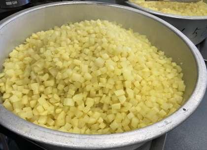 大根はクセが無いのでカレーとも合うのですが、水分が多い野菜でもあるのでカレー粉を入れて下茹でしてから使いました。黄色く色づいた大根の写真です。
