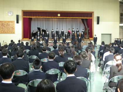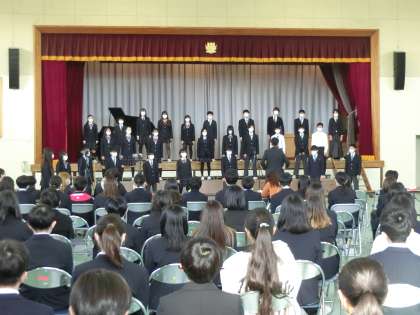 1時間目は1年生がリハーサルを行いました。いつもよりやや緊張気味です。左は1年B組、右がD組です。