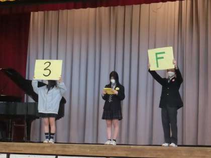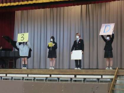 オーディエンス相は1,2年の生徒による投票で選び、3年生のみに贈られる賞です。今年は2クラスで3年F組と3年D組が選ばれました。