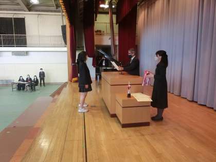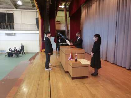 3年生の最優秀賞の3年E組、優秀賞の3年B組の表彰です。