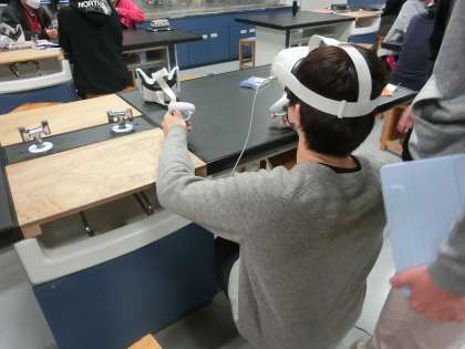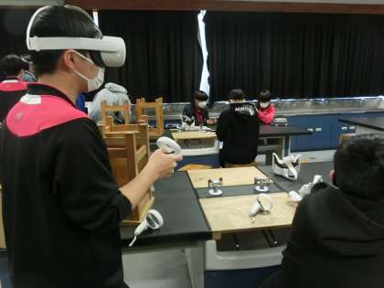 3年生の理科の授業です。VRを使って仮想空間を体験しました。実際に観てみるとリアリティがありました。