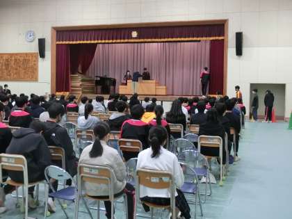 4時間目は担任の先生の呼名で証書授与の練習を行いました。