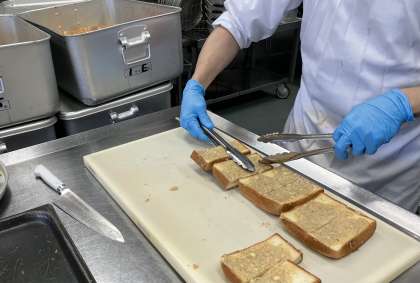 食パンの両端の部分にも、すりごまの生地を塗って焼き、各クラスに入れるおまけにしました。