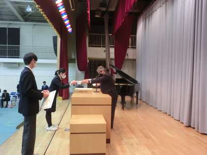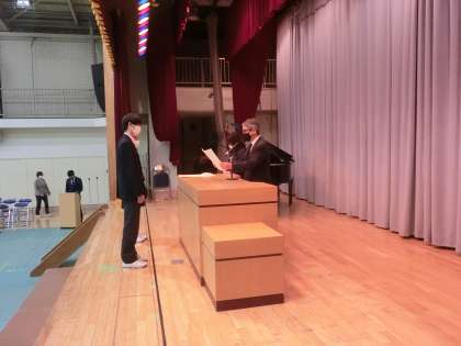 「在学中に体育スポーツを愛好し、率先して実践し、優れた技術を有し、スポーツ精神に優れ他の生徒の模範となる者」に贈られる賞です。沢山の候補者の中から男女各1名が表彰されました。