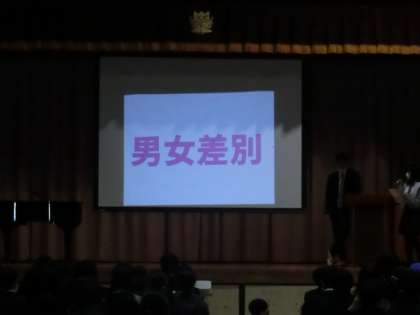F組は特に男女の差別問題について発表しました。