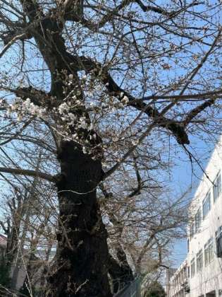 こちらは給食室横の桜です。咲き始めというところでしょうか。