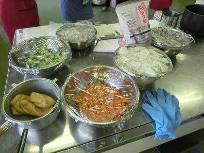 今日は今年度最後の夜の勉強教室です。はやくから「えがおさく街キッチン」の方たちが食事の準備をしてくださいました。ありがとうございます。