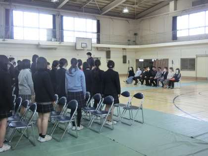先生方からのお話が終わった後、最後に卒業式に歌う合唱を先生方に聴かせました。中には歌いながら感極まって涙ぐむ生徒もいました。