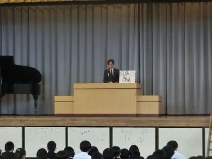 校長先生のお話です。「凡事徹底」あたりまえのことをあたりまえのやることの大切さについてお話をされました。