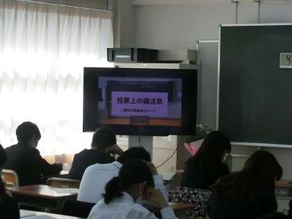 今朝は、生徒会執行部の補欠選挙を行いました。定員1名に対し2名が立候補しました。1年生は紙の投票用紙で、2,3年生はロイロノートを利用した電子投票を行いました。