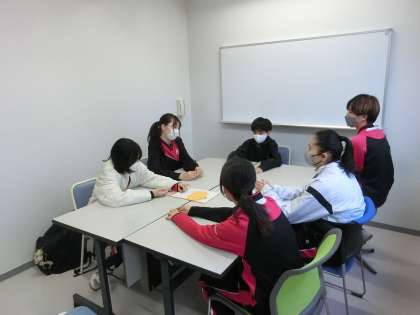 生徒会執行部です。今学期から生徒会室が東校舎3階から北校舎一階へ移動しました。今日は新しくできた生徒会室で話し合いを行いました。