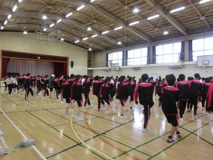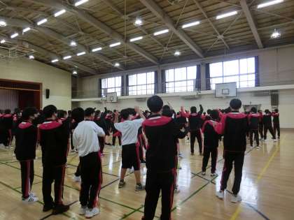 準備体操の後はダンスの練習です。狭いながらも一生懸命取り組んでいました。