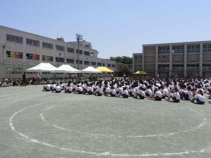 閉会式の様子です。なお、2年生、3年生の全員リレーは入退場のみ実施いたしました。