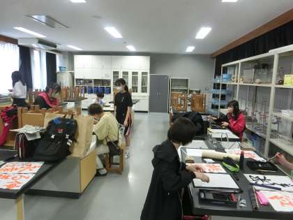 書道部の活動風景です。運動会ではパフォーマンスを予定しています。