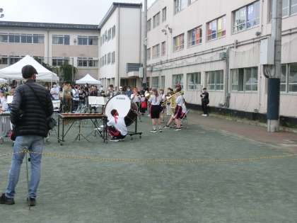 さあいいよいよ運動会が始まります。吹奏楽部のファンファーレでスタートです。