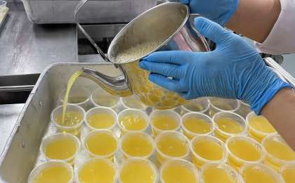 今日のゼリーは、りんごとオレンジを2層にしました。午前中がんばっている生徒達がお昼にほっとできるように、きれいに仕上げてくれました。