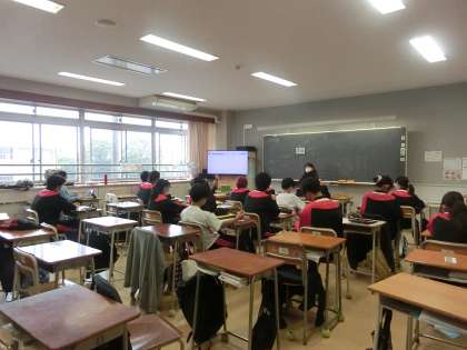 3年生の英語の少人数授業の様子です。落ち着いて取り組んでいます。