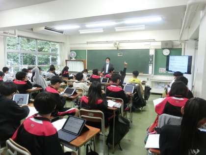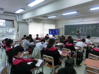 1年生の教科「日本語」の授業です。教科「日本語」では学年の教員がローテーションで授業を行っております。