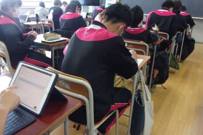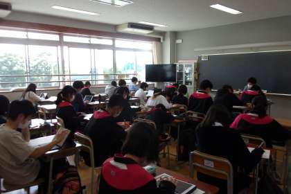 3年生「児童生徒の学力向上を図るための調査」を行っている様子です。