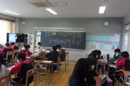 3年生の道徳の授業です。こちらは班で意見を出し合い考えを深めていきました。さすが3年生です。沢山の意見が交わされていました。