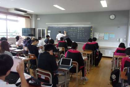 3年生の理科の授業です。今日は遺伝子の組み換えについて学習しました。