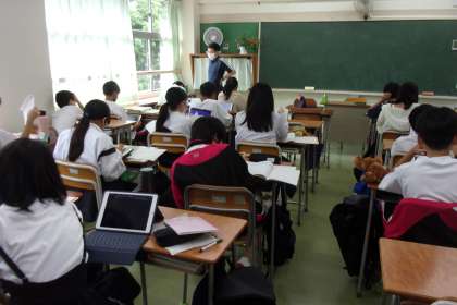 1年生の朝学習の様子です。キュビナを利用して課題に取り組みました。