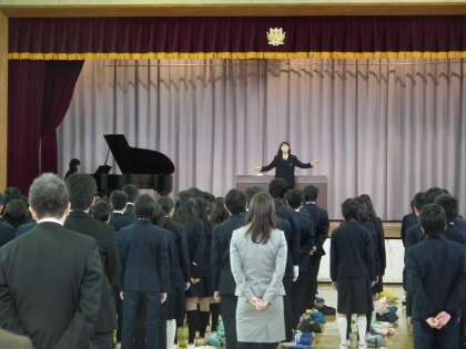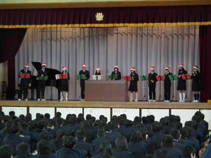 2学期の終業式では、ハンドベルの楽曲が披露されました。