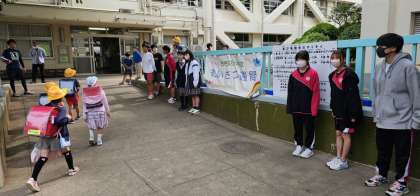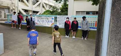 一昨日は笹原小学校で行いました。朝早いなか、生活委員が集合して、元気なあいさつをしていました。