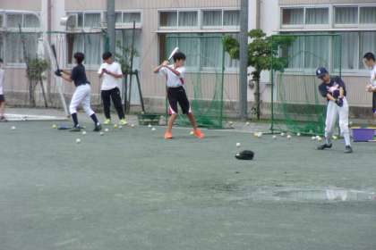 野球部の活動の様子です。トスバッティングを行いました。