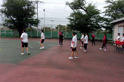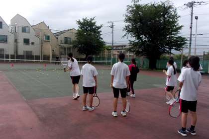 女子テニス部のサーブ練習の様子です。日曜日にはいよいよ夏季大会の団体戦ですね。